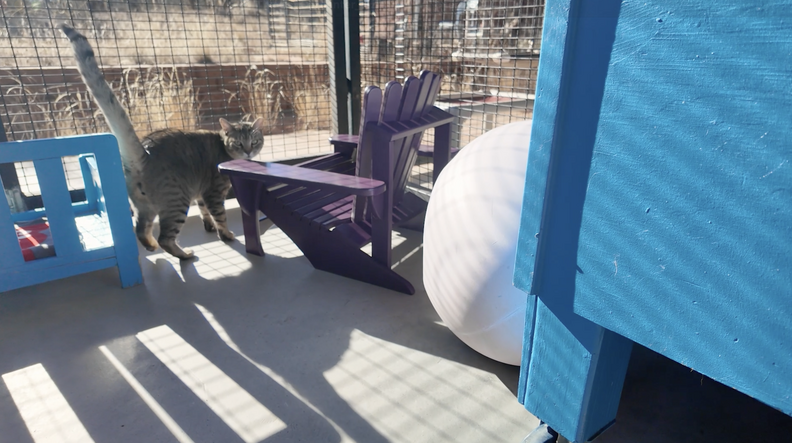 McIff volunteers at Best Friends Animal Sanctuary in Kanab, Utah. As he was building the mini Adirondack chairs for his own cats, he thought back to his times at the shelter and realized that the cats there definitely didn’t have enough cozy places to sit. So, he decided to build them some.