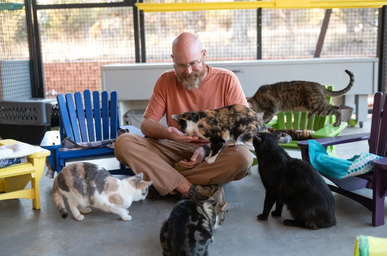 guy with cats on chairs